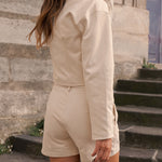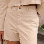 Découvrez Naïa, notre short à la coupe droite et élégante. Sa taille marquée met en valeur la silhouette, tandis que sa matière douce assure confort et liberté de mouvement.
